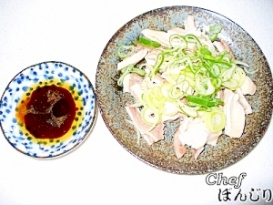 鶏もも肉とキャベツの酒蒸しとボイル豚ガツのガツ刺し いつも自分の世界です